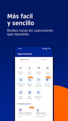 A Banca Móvil BCP egy komplett pénzügyi központot nyújt a tenyerébe. Könnyedén ellenőrizheti BCP számláinak és hitelkártyáinak aktuális egyenlegét, valamint részletes mozgásait. Gyorsan és biztonságosan bonyolíthat le átutalásokat saját BCP számlái között, vagy küldhet pénzt harmadik fél BCP számláira. A hitelkártya-törlesztések kezelése is rendkívül egyszerű, akár saját kártyáját, akár mások BCP hitelkártyáját szeretné rendezni.