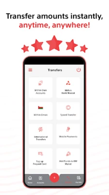 Az alkalmazás számos kulcsfontosságú funkcióval segíti a mindennapi banki műveleteket. Biztosítva a folyamatos, éjjel-nappali hozzáférést a számláihoz, egyszerűen rendezheti számláit, és azonnal feltöltheti mobiltelefonját. Pénzátutalásokat kezdeményezhet Ománon belül és nemzetközi szinten egyaránt. A Bank Muscat Mobile Banking (mBanking) emellett lehetővé teszi bankkártyáinak kényelmes kezelését is: igényelhet vagy megújíthat kártyákat, azonnal generálhat vagy módosíthat PIN-kódokat, sőt, elvesztés esetén azonnal letilthatja a kártyáját. Az extra rugalmasság érdekében több számlát is összekapcsolhat egyetlen bankkártyához.