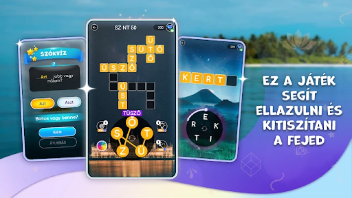 A Nyugtató szókeresővel elmerülhet a béke szigetén. Fedezze fel a világ legnyugodtabb tájait, miközben izgalmas és addiktív szókirakós feladatokat old meg. Tökéletes kikapcsolódás a mindennapi stressz után.