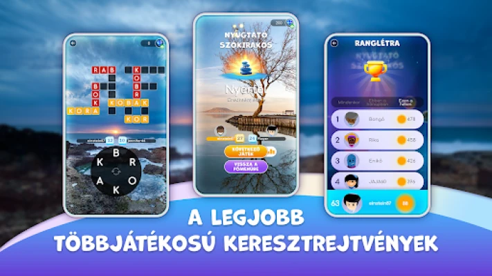 A Nyugtató szókirakós nem csak egy játék, hanem egy közösségi élmény is. Vessétek össze tudásotokat más játékosokkal a lendületes többjátékos módban, ahol a rangsorolás biztosítja, hogy mindig hasonló szintű ellenfelekkel mérd össze magad. Figyeld, ahogy fejlődsz, és légy a legjobb a ranglistán! Különleges napi kihívások – reggeli és esti rejtvények – várnak rád, ha egy kis extra izgalomra vágysz. Minden nap ajándék drágaköveket szerezhetsz, így sosem fogsz elakadni a haladásban. Ez a játék minden korosztály számára ideális, gyerekek és felnőttek számára egyaránt szórakoztató, és tökéletesen működik telefonon és tableten is. Bárhol, bármikor játszhatsz, és élvezheted a kikapcsolódást a számos támogatott nyelv egyikén, mint például a magyar. Visszajelzéseid rendkívül fontosak számunkra, segítsd munkánkat javaslataiddal!
